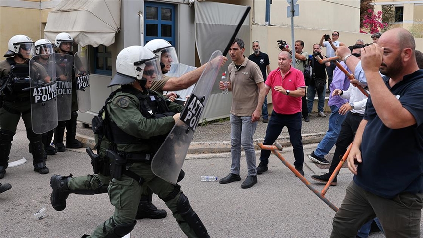 Yunanistan’ın başkenti Atina’da dünden bu yana grev yapan taksicilerin Altyapı ve Ulaştırma Bakanlığı önündeki eylemi sırasında, polis ile taksiciler arasında arbede çıktı.