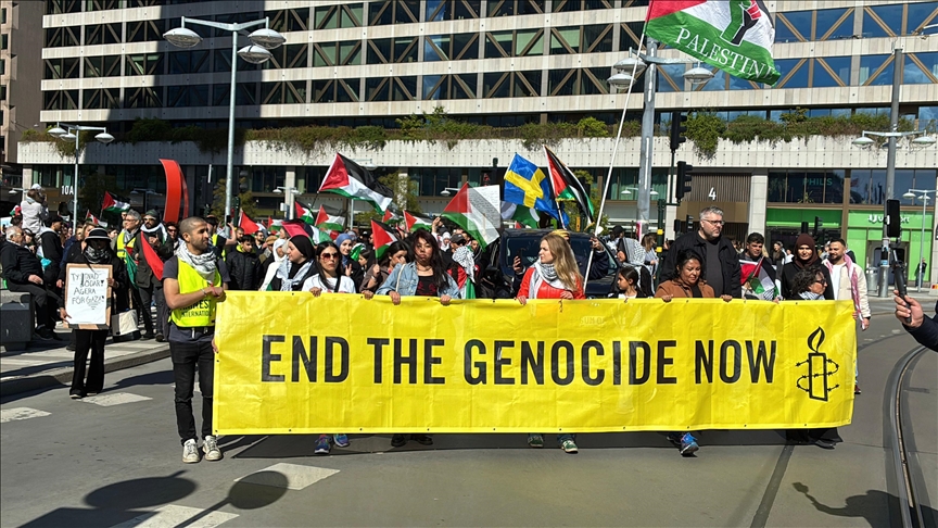 “Şu anda yaşananlar gerçekten iğrenç, İsrail’in okulları, hastaneleri bombaladığını, gazetecileri, yardım çalışanlarını ve insani yardım görevlilerini öldürdüğünü ve özellikle çocukları hedef aldığını görüyoruz. 50 binden fazla insan öldü, 15 binden fazla çocuk hayatını kaybetti ve İsveç hükümeti sessiz. İsveç hükümeti, tepkilerden etkilenen bir hükümetti ancak bu zamana kadar Gazze saldırılarına sessiz kalması halk tarafından kabul edilmiyor. Şu anda yaşananlar bir soykırım ve soykırıma karşı tavır almayan bir İsveç hükümeti var. Artık İsveç hükümetinin etnik temizliğe ve Gazze işgaline karşı harekete geçmesi gerekir.”