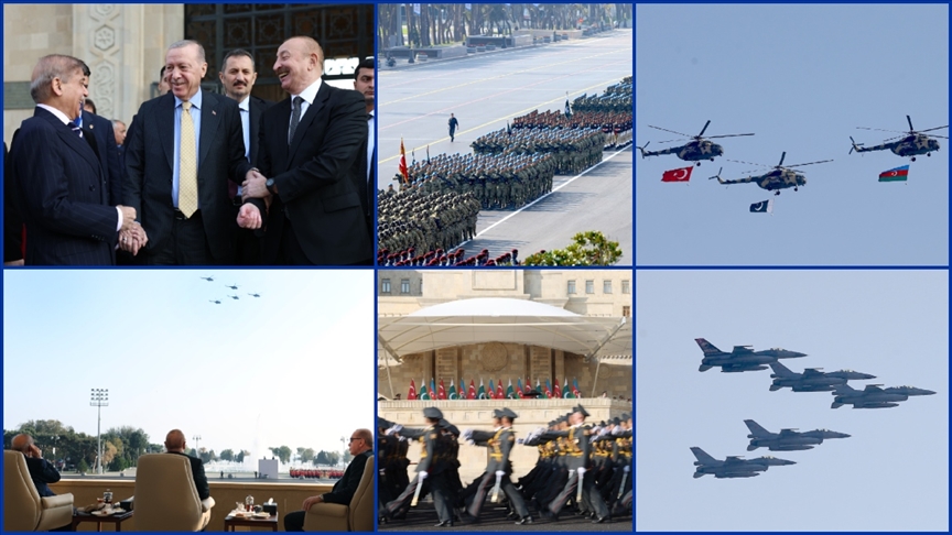 Azadlık Meydanı’ndaki töreni Azerbaycan Cumhurbaşkanı İlham Aliyev, Cumhurbaşkanı Recep Tayyip Erdoğan ve Pakistan Başbakanı Şahbaz Şerif birlikte izledi.