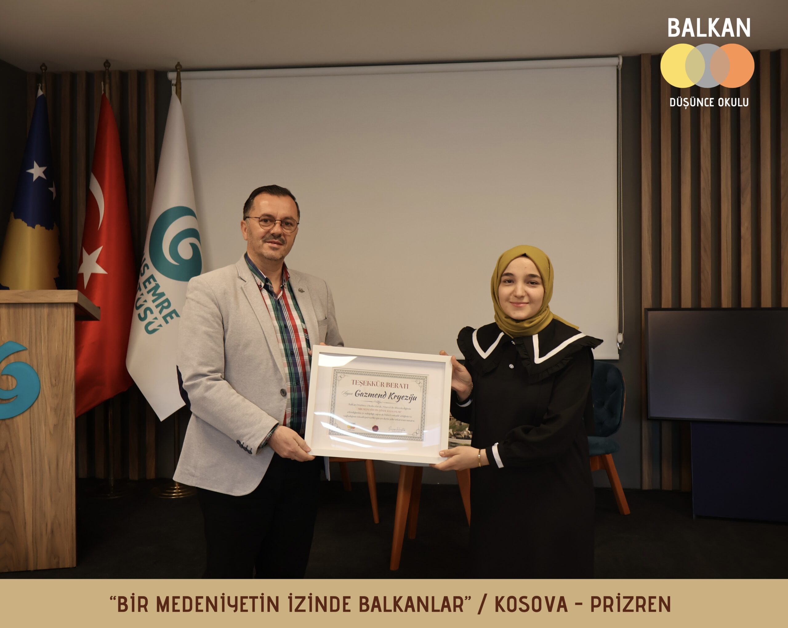 Balkan Düşünce Okulu, Kosova’nın kültürel ve tarihi dokusuyla öne çıkan Prizren şehrinde Yunus Emre Enstitüsü’nün Prizren Şubesi’nin ev sahipliğinde “Bir Medeniyetin İzinde Balkanlar” başlıklı bir söyleşi gerçekleştirdi.
