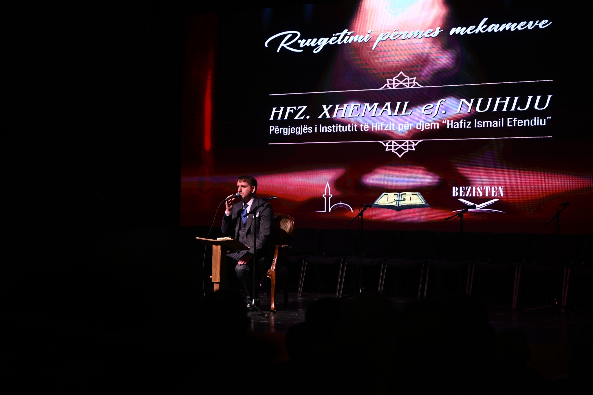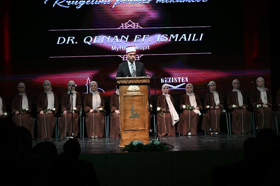 “Şahsım adıma ve Enstitünün muhafızları adına hepinizi İslami selamla selamlıyoruz. Kur’an-ı Kerim’e adanmış bu güzel akşama, Üsküp Müftülüğüne bağlı Bezisten Enstitüsü ve Gostivar Müftülüğüne bağlı “Hasan ef. Zendeli” Hıfz ve Güzel Okuma Enstitüsü tarafından düzenlenen bu programa hoş geldiniz.