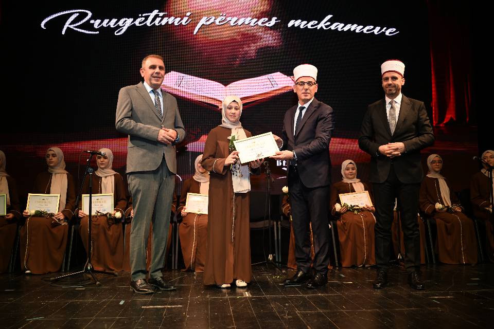 Üsküp’teki Arnavut Tiyatrosu’nda gerçekleştirilen programa İslam Dini Birliği Genel Sekreteri İrsal Yakupi, Üsküp Müftüsü Qenan İsmaili, Gostivar Müftüsü Sabahudin Zendeli, “Isa Bey” Medresesi müdürü İslam İslami, Türkiye’nin Üsküp Büyükelçiliği Din Hizmetleri Müşaviri Mustafa Bodur, İslam Dini Birliği Meclisi başkanı Nesip Demiri, İlahiyat Fakültesi Dekan Yardımcısı prof. dr. Ziber Lata, “Bezisten” Kız Hafızlık Enstitüsü Sorumlusu Hafız Kadriye Süleyman ve yardımcısı hfz. Hüsniye Kurtuluş, “Hafız İsmail Efendi” Erkek Hıfz Enstitüsü sorumlusu hfz. Xhemail Nuhiju ve yardımcısı hfz. Yashar İbrahim, Gostivar “Hasan ef. Zendeli” – Hıfz ve Güzel Okuma Enstitüsü müdürü Hafız Elyesa Asani, İsa Bey Medresesi Üsküp kızlar sınıfı koordinatörü mr. Nurtene Shehu Sakipi’nin, Kalkandelen kız sınıfı koordinatörü Beqir Memeti ve çok sayıda davetli katıldı.