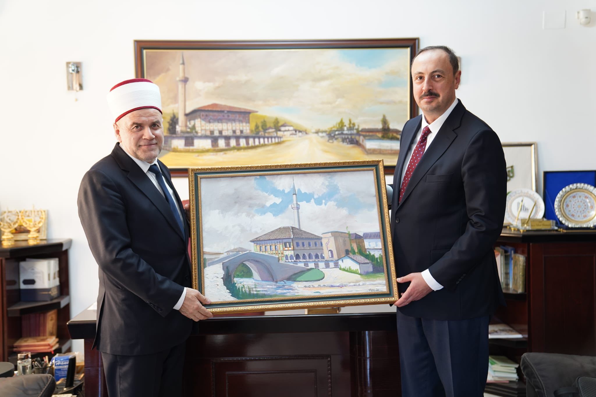 Büyükelçimiz Fatih Ulusoy, Din Hizmetleri Müşavirimiz ile birlikte Kalkandelen Müftüsü Selver Cemaili’yi makamında ziyaret etmiştir. Türkiye, İslam Dini Birliği ile işbirliğini sürdürmektedir. Sayın Müftü’ye çalışmalarında başarılar diler, nazik evsahipliği için teşekkür ederiz.”