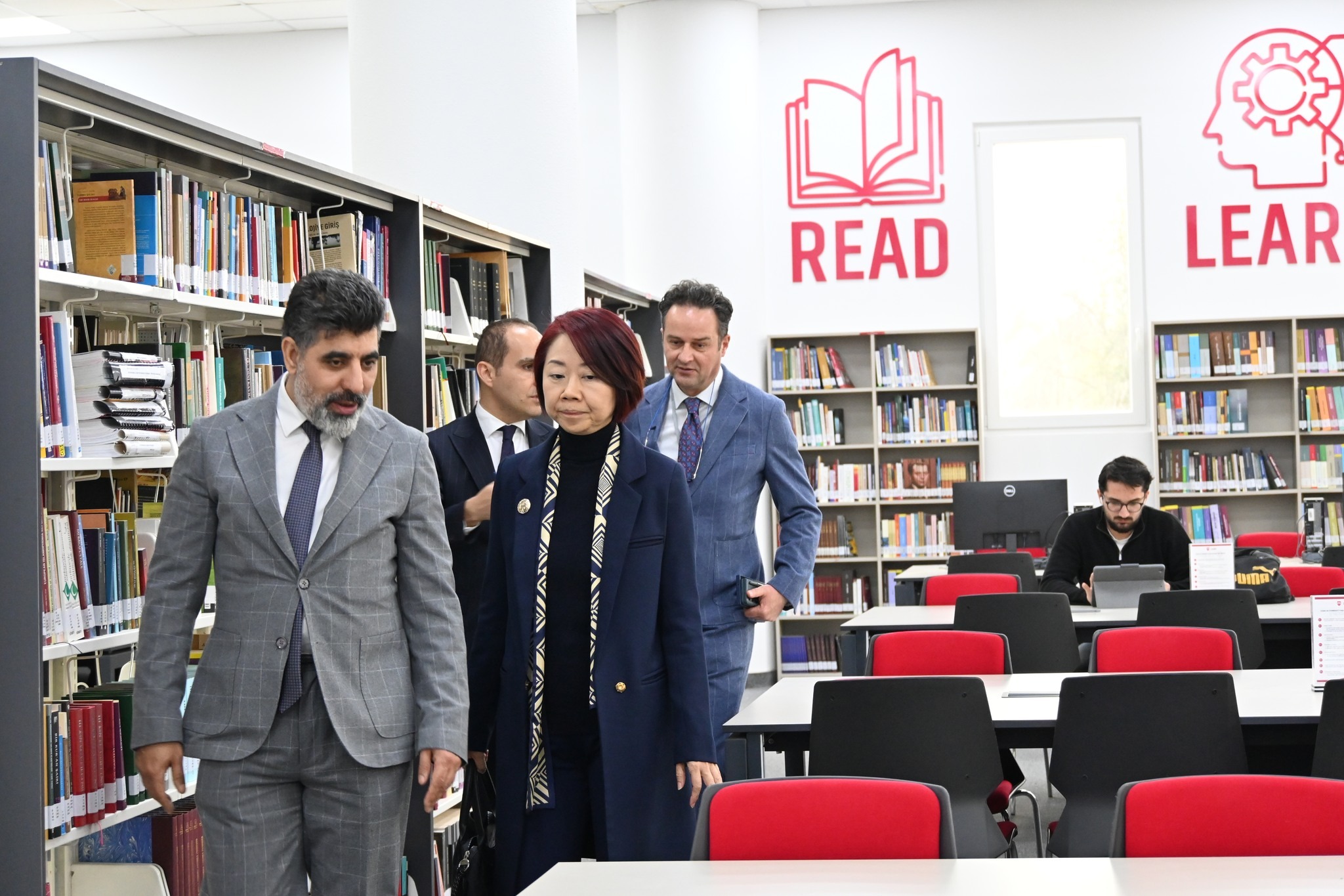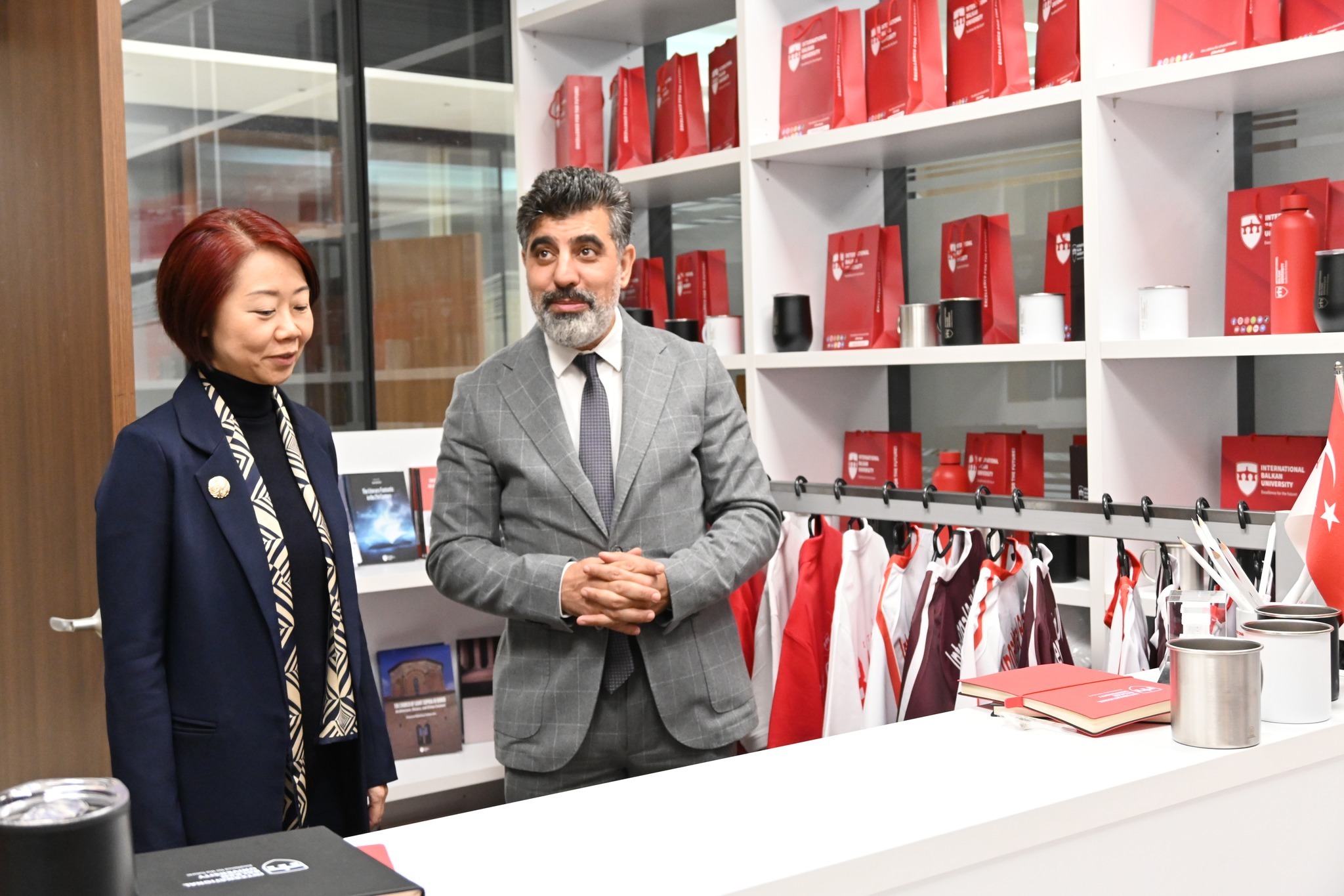 Ziyaret kapsamında Rektörümüz tarafından Sayın Büyükelçi Jiang Xiaoyan’a resmi bir hediye takdim edildi ve ardından üniversitemizin olanakları ile yaratıcı ortamını tanıtan bir kampüs turu gerçekleştirildi.