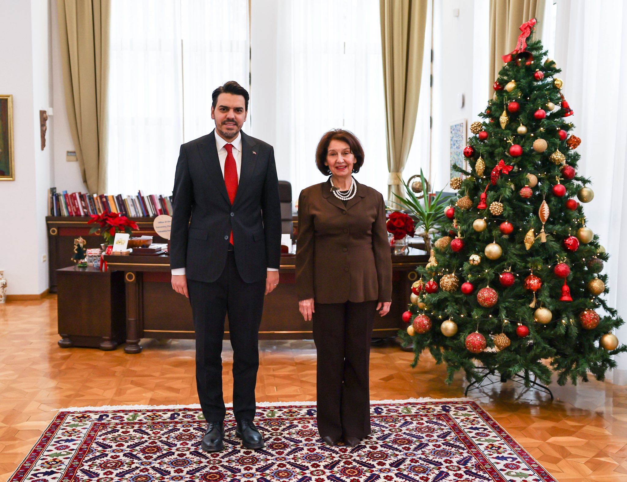 Kuzey Makedonya Cumhuriyeti Cumhurbaşkanı Sayın Gordana Siljanovska’yı ziyaret ederek, iki ülke arasında kalkınma odaklı iş birliklerini karşılıklı anlayış ve ortak gelecek vizyonu çerçevesinde ele aldığımız verimli bir görüşme gerçekleştirdik.