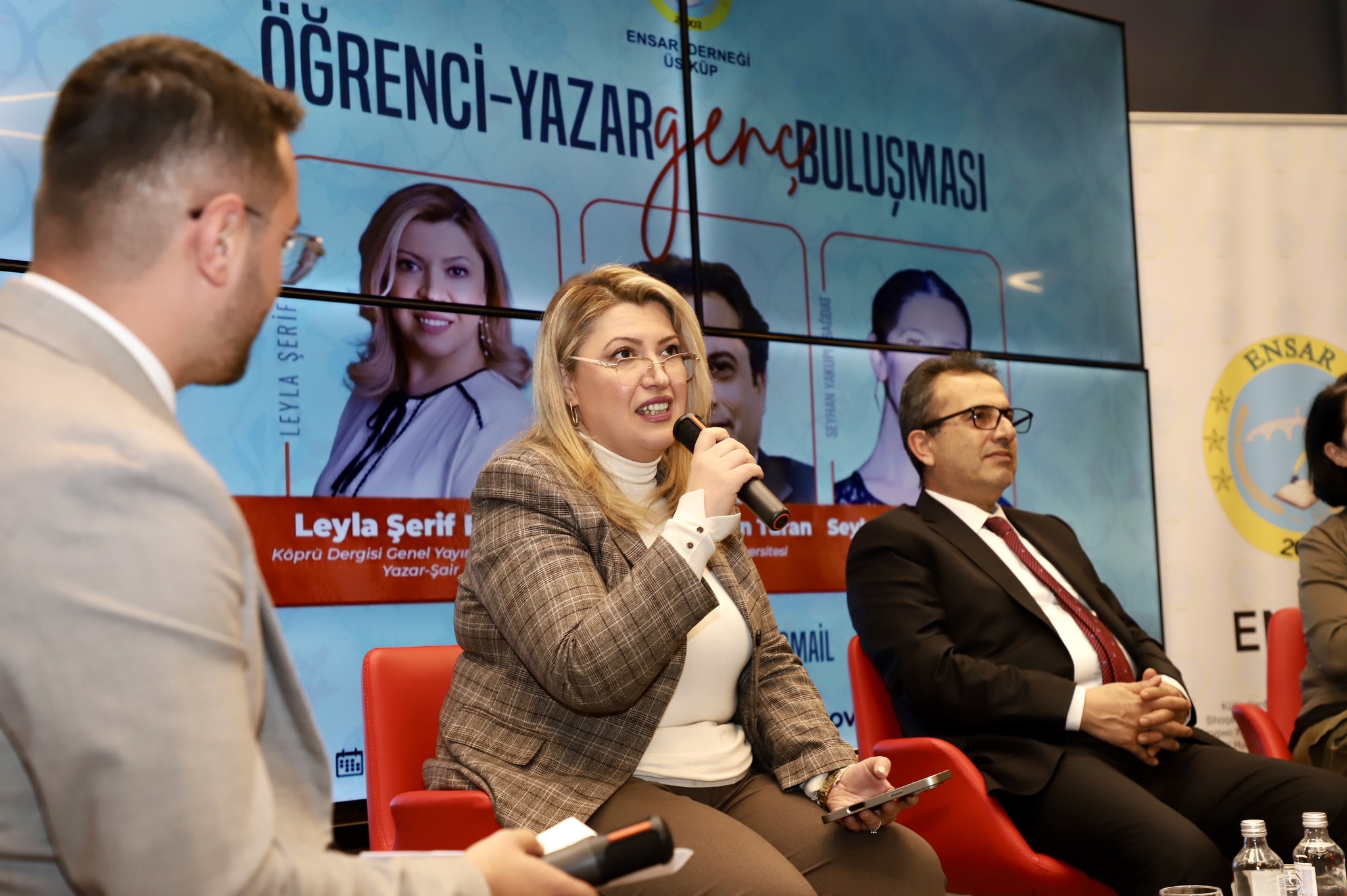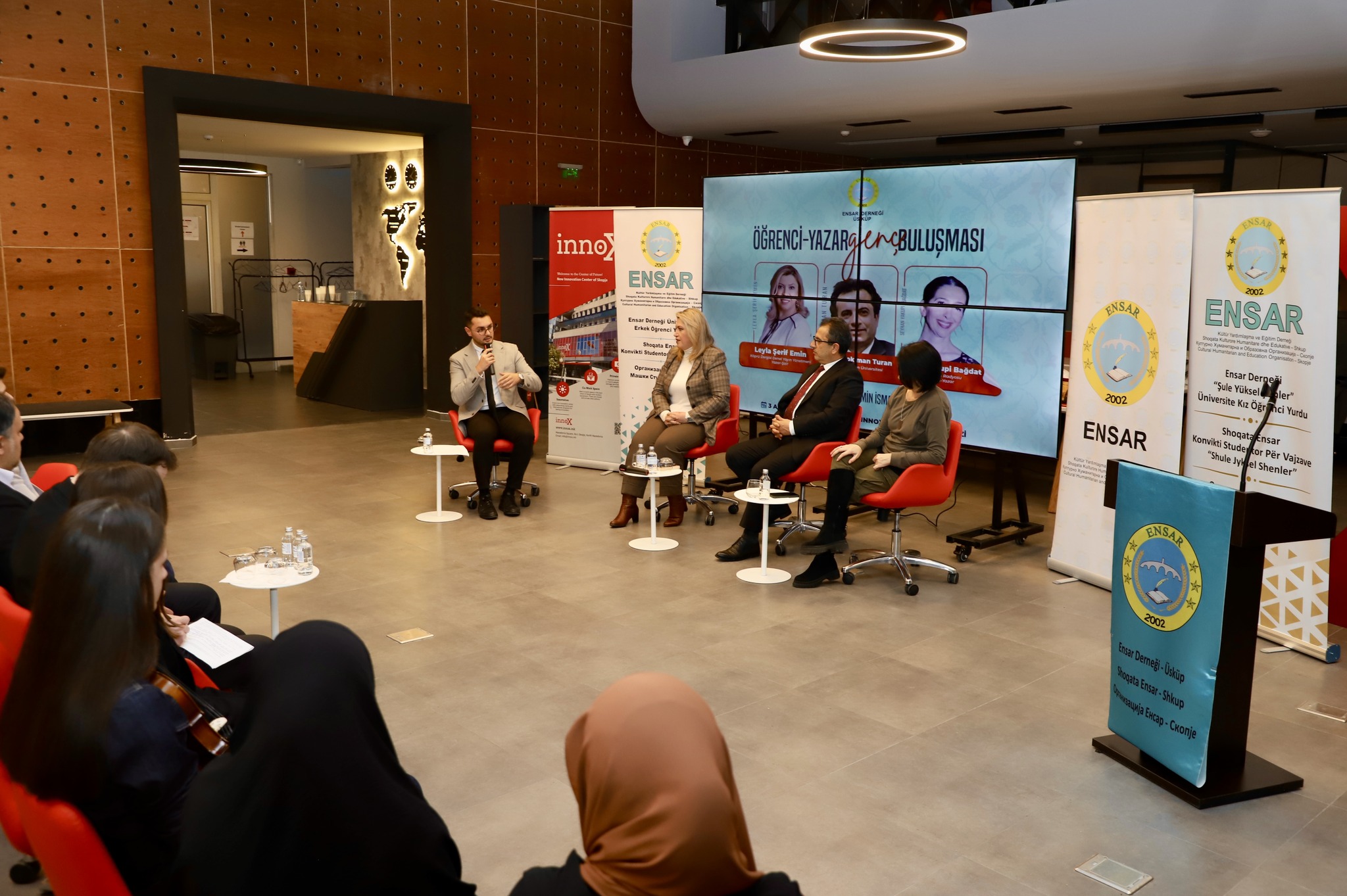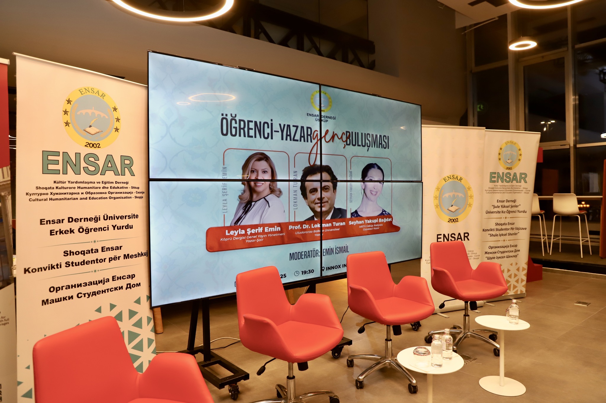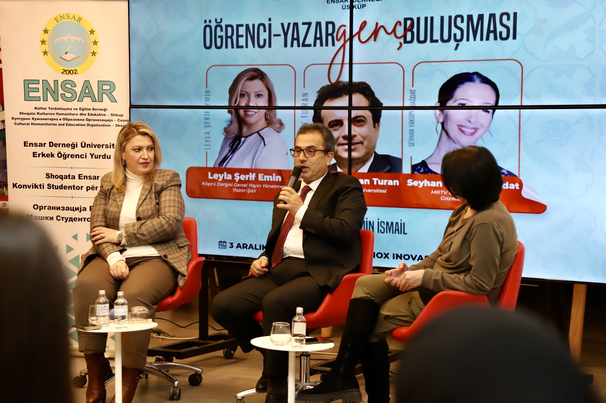 “3 Aralık 2025 tarihinde Ensar Derneği Üniversite Kız ve Erkek Yurt öğrencilerimize yönelik; Yazar-Şair Leyla Şerif Emin, Prof. Dr. Lokman Turan ve Gazeteci-Yazar Seyhan Yakupi Bağdat’ın katılımlarıyla “Öğrenci-Yazar Genç Buluşması” adlı söyleşimizi gerçekleştirdik.