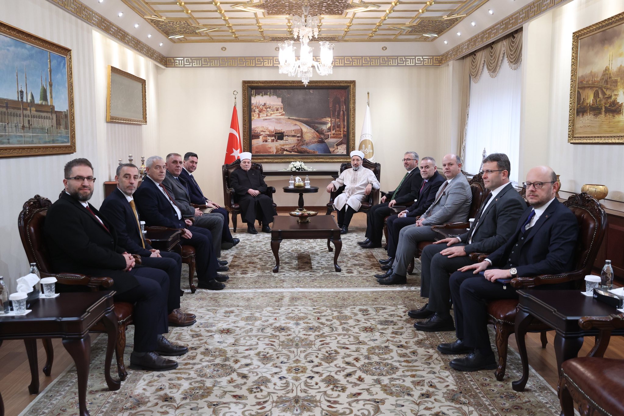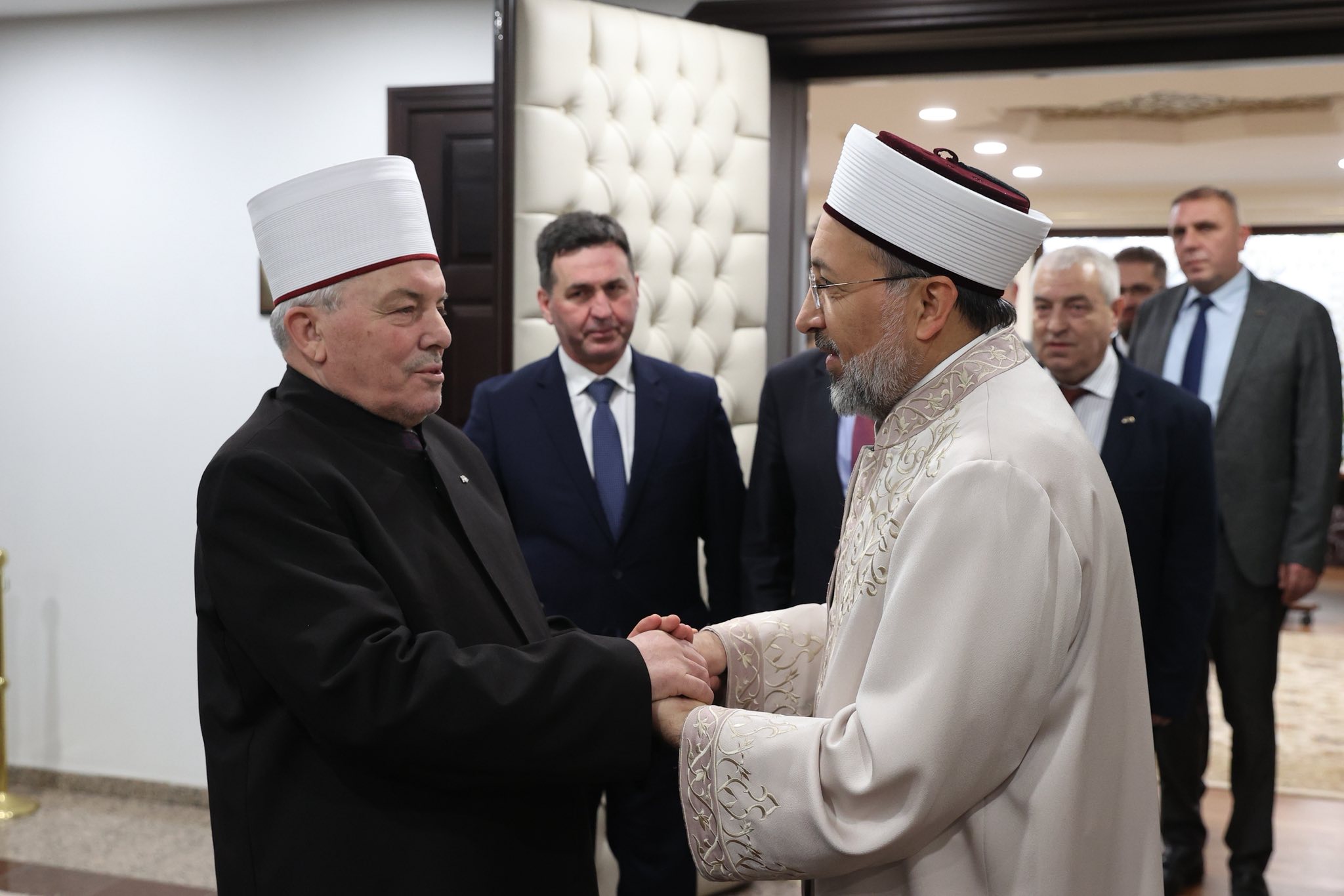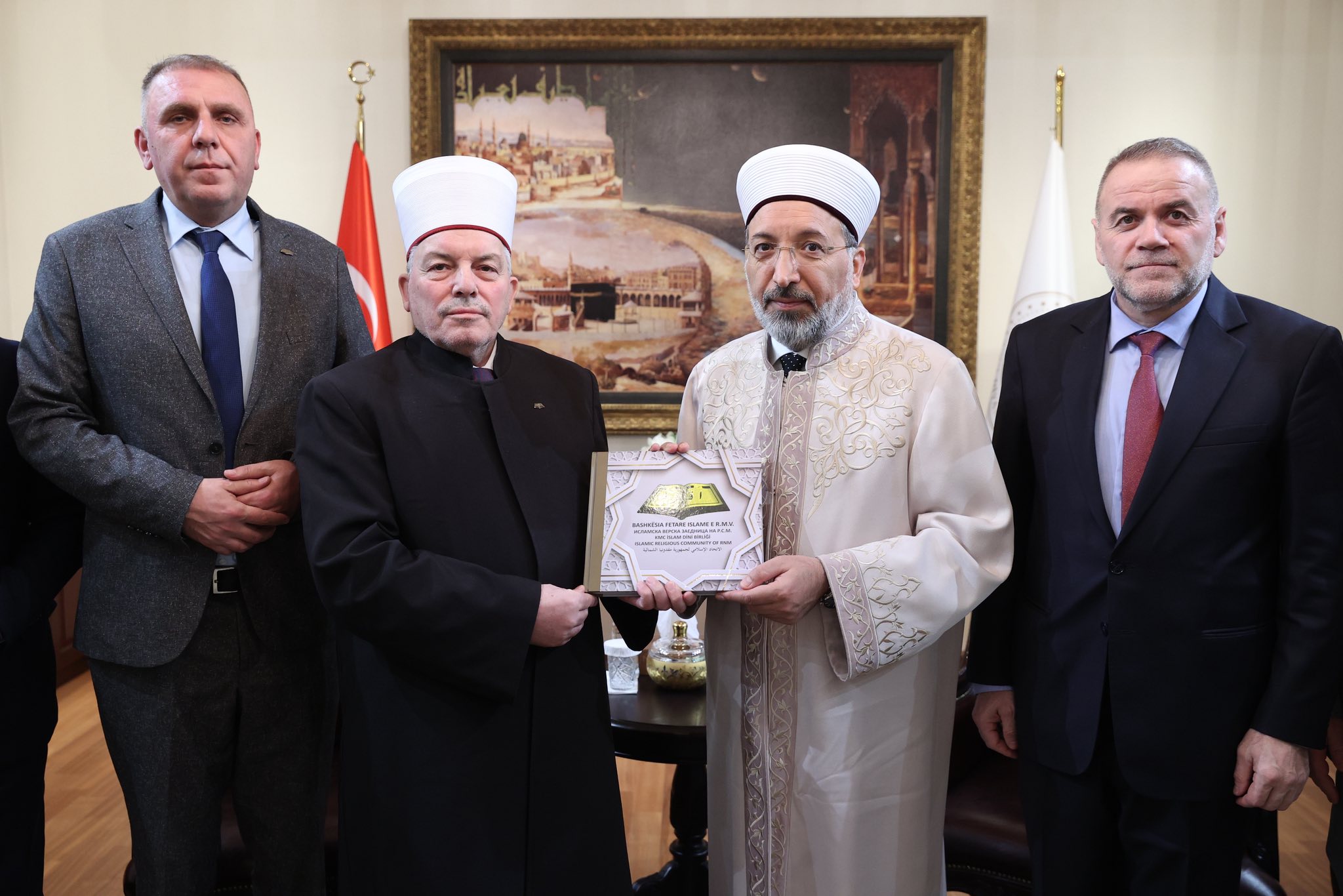 “Kuzey Makedonya İslam Dini Birliği Başkanı Sayın Reisü’l-Ulemâ H. Hfz. Şakir Efendi Fetai, İDB Genel Sekreteri, Kalkandelen, İştip ve Manastır Müftüleri ile Türkiye ile İlişkiler Sorumlusu, Vakıflar Müdürlüğü Müdürü ve Diaspora Sorumlu Müdürü eşliğinde Türkiye Diyanet İşleri Başkanı Prof. Dr. Sayın Safi Arpaguş’a resmî bir ziyaret gerçekleştirdi.
