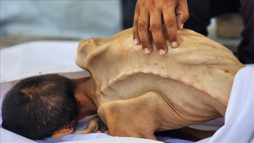 Gazze’nin güneyindeki Han Yunus kentinde bulunan Nasır Hastanesi’nde açlıktan can veren Adil’in bir deri bir kemik kalan vücudu son derece küçülmüş, karnı çökmüş, yüzü ise adeta dünya ile bağlantısı kalmamış “etten kemikten bir heykeli” andırıyordu.