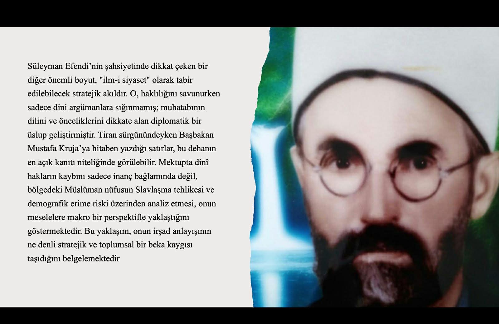 Merhum hocanın vatansever kişiliği, mütevazı fakat müreffeh manevî yaşamı ile İstanbul, Kalkandelen, Üsküp, Prizren, Tiran ve Saraybosna’da yürüttüğü çok boyutlu faaliyetleri bu yüksek lisans tezinde ayrıntılı biçimde ortaya konmuştur. Teze sunduğu ilmî katkılar dolayısıyla danışman Prof. Dr. Hasan Kâmil Yılmaz’a ve çalışmayı büyük bir özveri ve titizlikle hazırlayan yüksek lisans öğrencisi Beyzanur Punar’a, savunma sonrası yaptığı konuşmada Hafız Süleyman Efendi’nin torunu Dr. Behicüddin Şehabi teşekkürlerini ifade etmiştir.