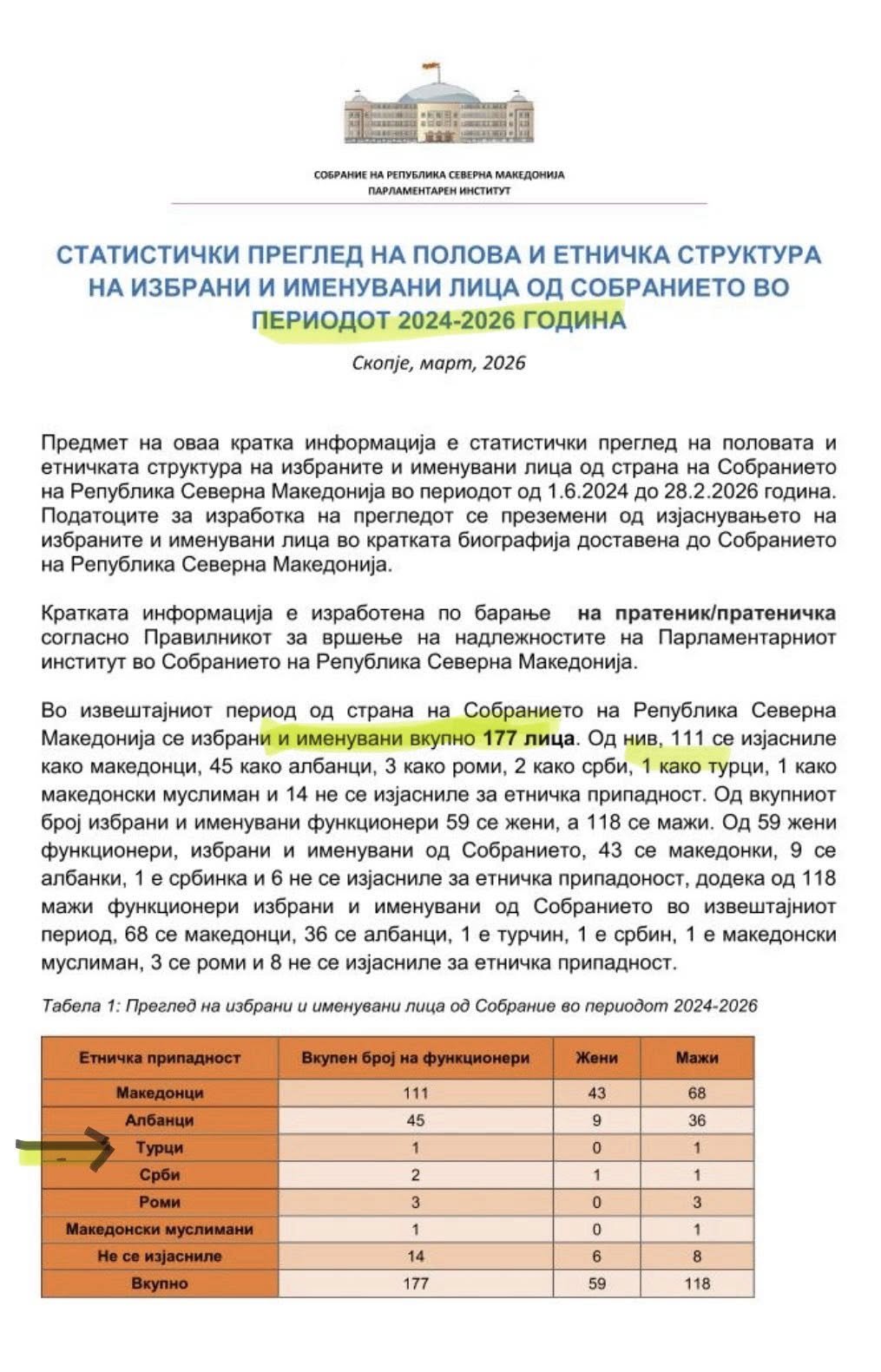 Birkaç kez meclis kürsüsünden ayrımcılık yapıldığını vurguladım. Geçenlerde Meclis Enstitüsü’nden, meclis tarafından seçilen ve atanan kişilerin milli mensubiyetlerini resmi olarak talep ettim. Araştırma sonuçları zamanında tüm vekillere ulaştırıldı.