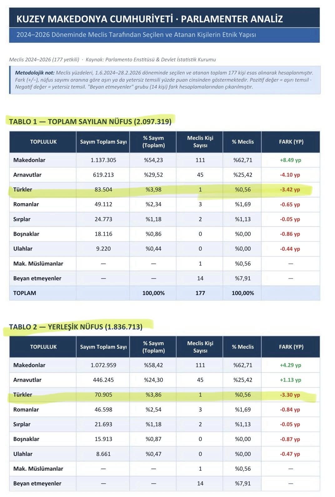 Tabloya ve paylaştığım analize bakıldığında, Makedonya Türklerine yönelik açık ve süregelen ayrımcılık tartışmasız biçimde ortadadır.