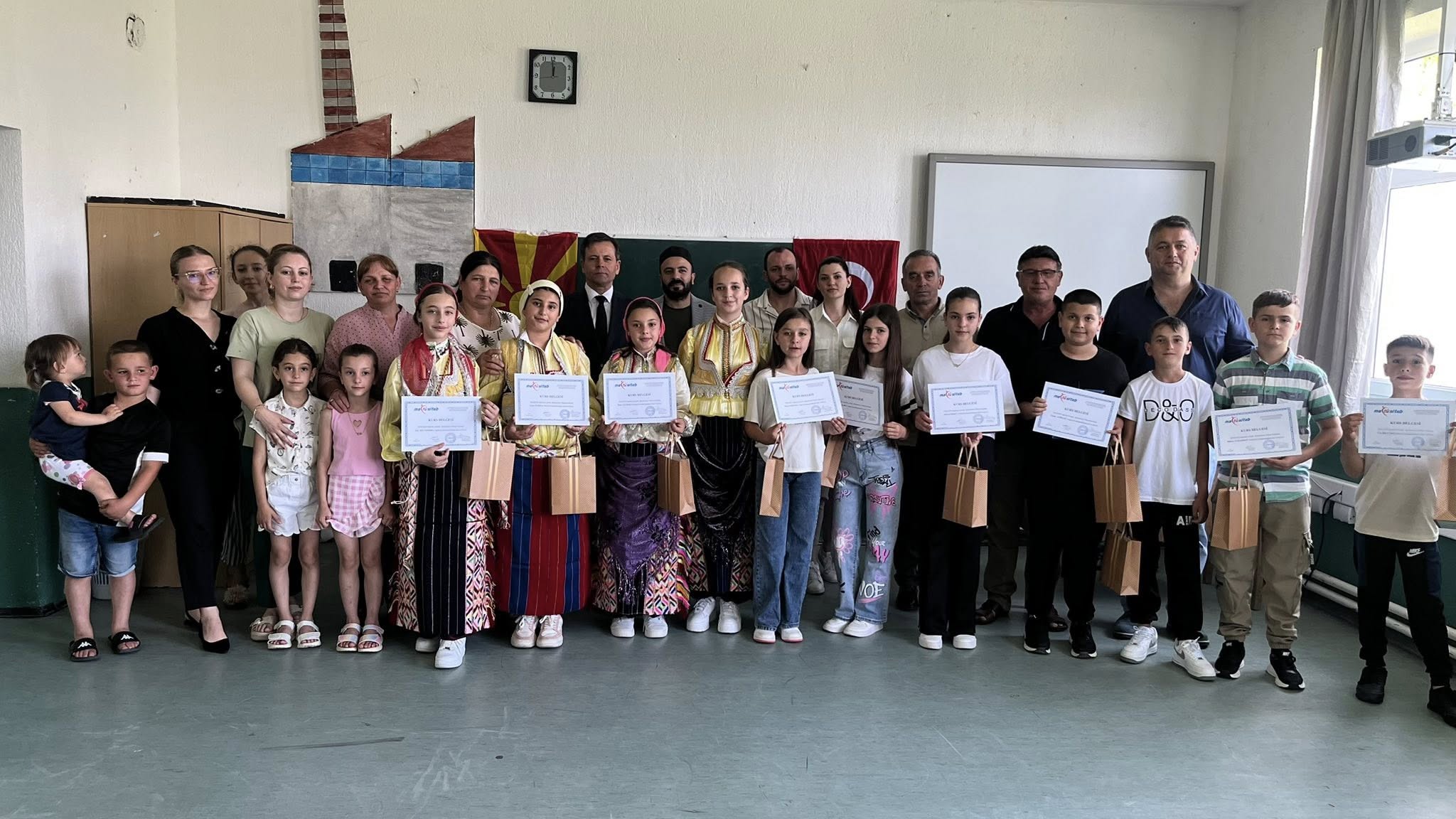 “Türk İşbirliği ve Koordinasyon Ajansı Başkanlığı (TİKA)’nın destekleriyle, Makedonya Türk Sivil Toplum Teşkilatları Birliği (MATÜSİTEB) organizasyonunda, Çaşka Belediyesine bağlı Melnitsa köyünde düzenlenen Türkçe kurslarını başarıyla tamamlayan öğrenciler için sertifika töreni gerçekleştirildi.