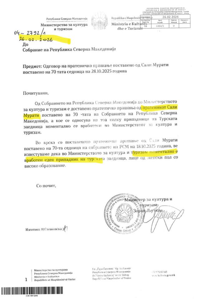 Makedonya Türkleri Hak ve Demokrasi Hareketi’nin Avrupa Cephesi’nden seçilen milletvekili Salih Murat, Kültür Bakanlığı’nda seçici ve sistematik ayrımcılık yapıldığını belirtti.