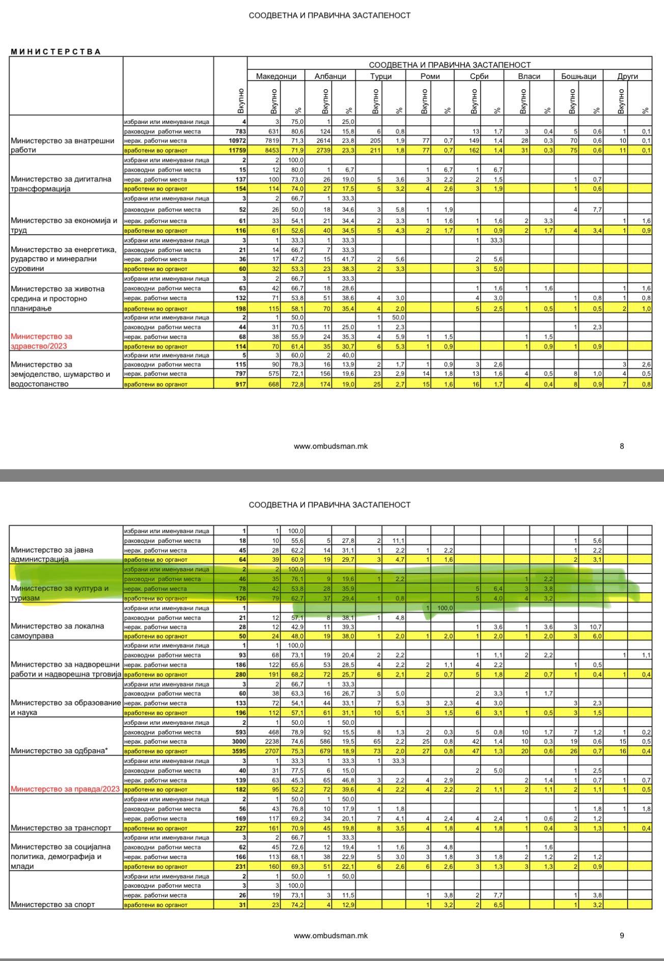 Özellikle dikkat çekici olan husus şudur: Kültürel çeşitliliği teşvik etmek ve korumakla yükümlü olan bu bakanlığın, Romanları ve Boşnakları çalışan kadrosunda sıfıra indirmiş olması; Türk toplumunun ise hak ettiği beş temsilci yerine yalnızca bir temsilciyle temsil edilmesidir. Bu durum, Anayasa’nın VI. Değişikliği’ni ve ayrımcılıkla mücadeleye ilişkin uluslararası yükümlülükleri doğrudan ihlal etmektedir.