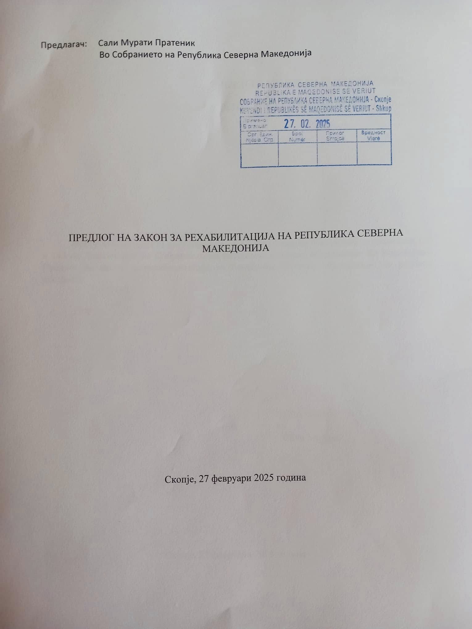 Makedonya Türkleri Hak ve Demokrasi Hareketi’nin Avrupa Cephesi’nden seçilen milletvekili Salih Murat, Yücelcilerin iade-i itibarı için yasa teklifinde bulundu.