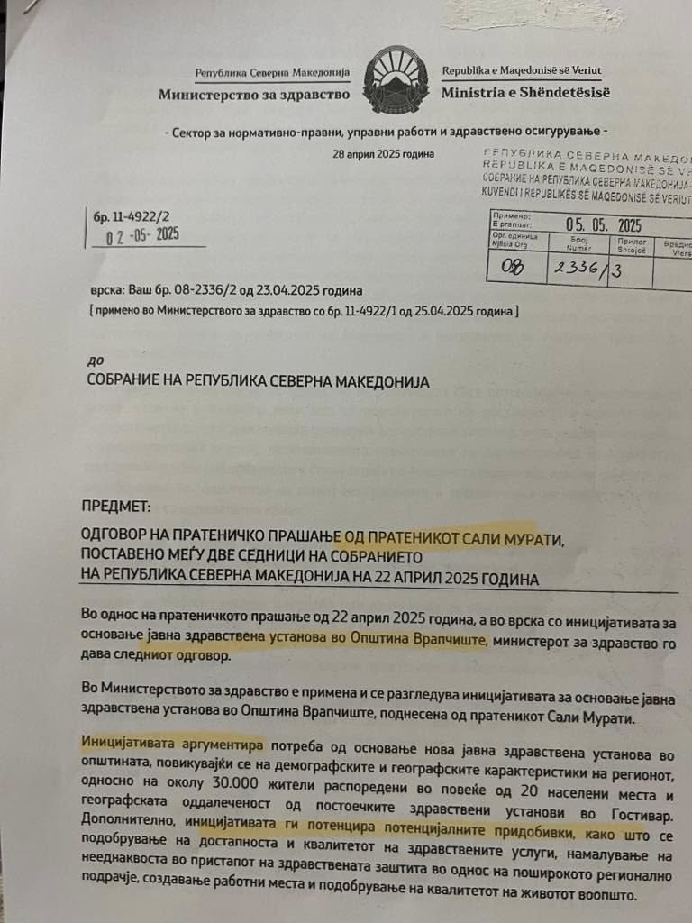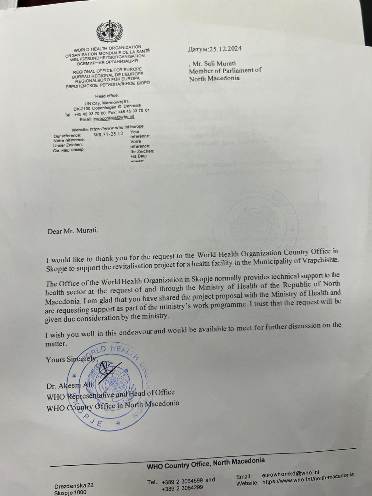 Makedonya Türkleri Hak ve Demokrasi Hareketi’nin Avrupa Cephesi’nden seçilen milletvekili Salih Murat, Vrapçişte’deki sağlık hizmetleri ve sağlık ocağıyla ilgili açıklamalarda bulundu.