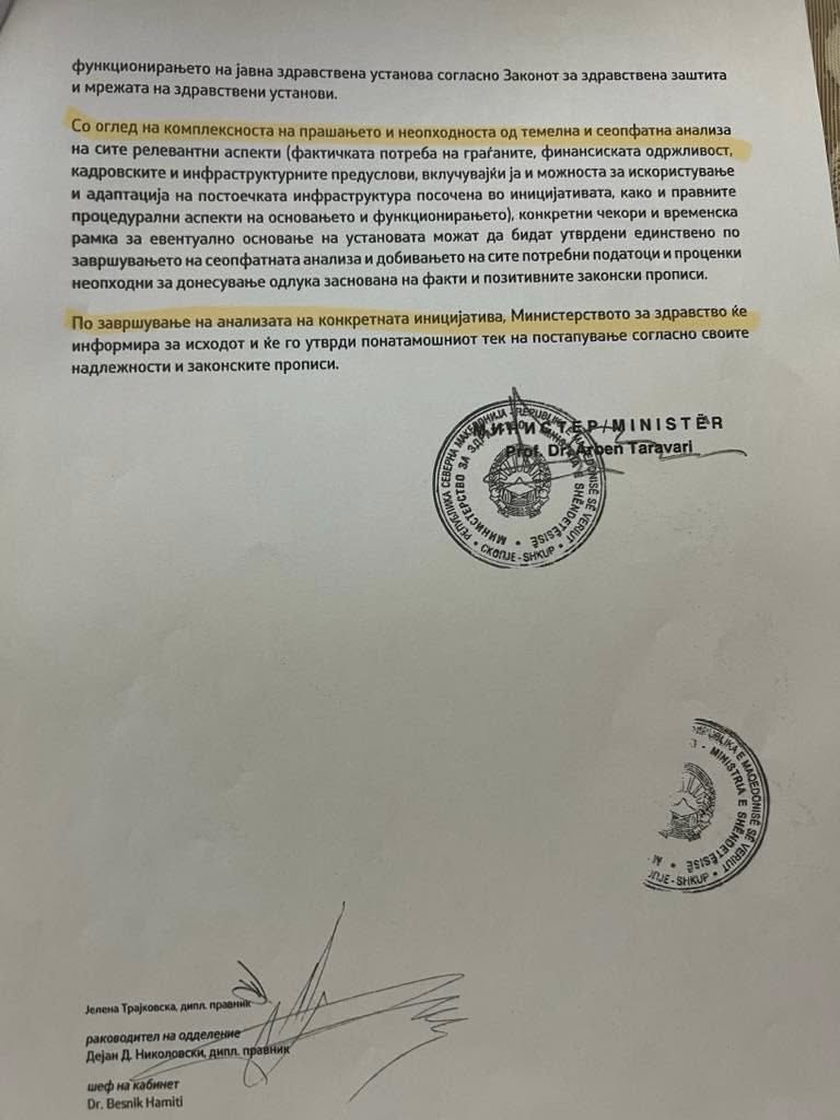 Buna göre, Bakanlık, Vrapçişte’nin demografik ve coğrafi zorluklarını kabul ederek, eski sağlık evi binasının değerlendirilmesi, finansal analiz ve personel planlamasını içeren detaylı bir analiz süreci başlattı. Bu analizlerden sonra süreç tam karara bağlanacak.