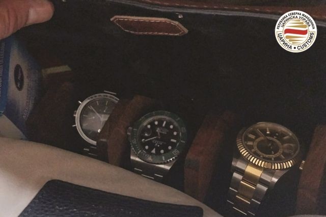 Olayda toplam değeri 2,34 milyon denar (yaklaşık 38 bin euro) olan iki adet Rolex ve bir adet Omega marka saat ele geçirildi.