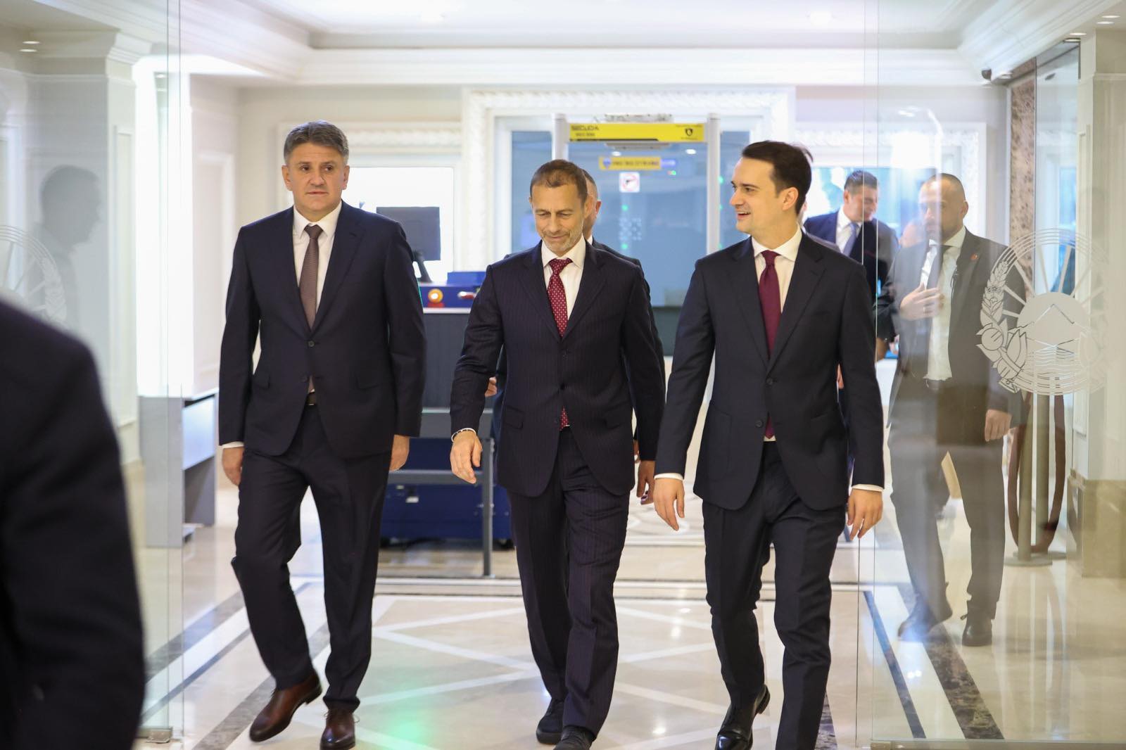 UEFA Başkanı Čeferin, Üsküp temasları kapsamında ayrıca Kuzey Makedonya Başbakanı Hristijan Mickoski ve Spor Bakanı Borko Ristovski ile de bir araya geldi.