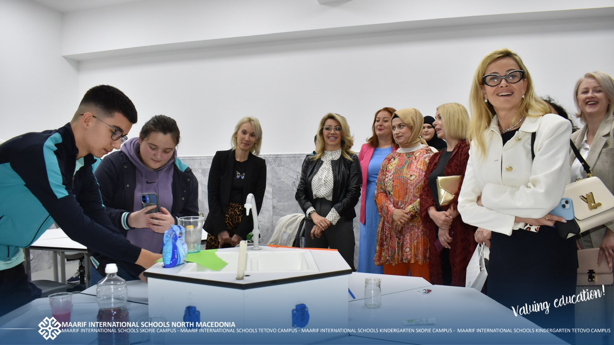 STEAM laboratuvarında ise öğrenciler, konukların huzurunda bilimsel deneyler gerçekleştirdi.