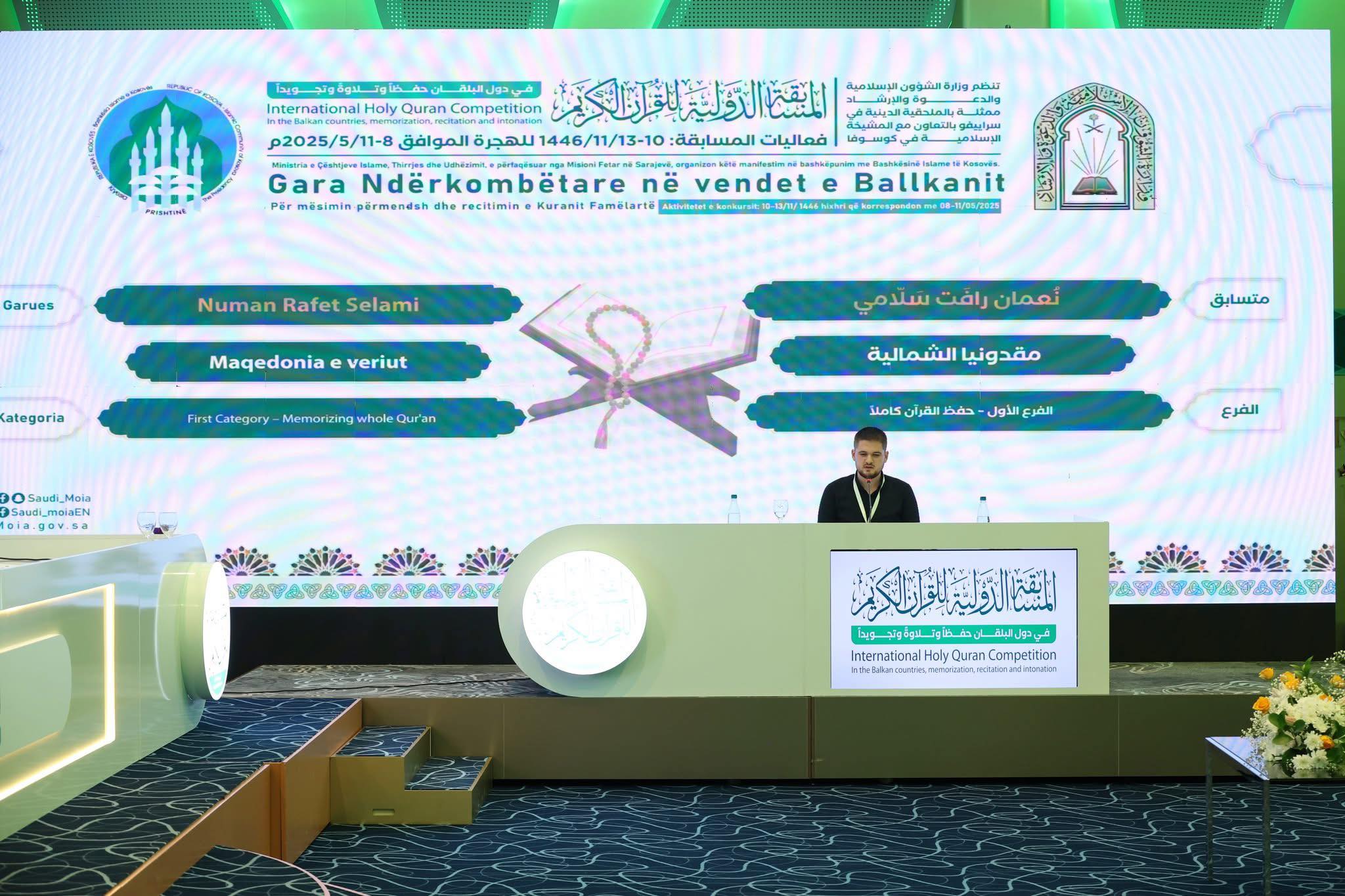 Üsküp Murat Paşa Camii imamlarından Hafız Numan Selami, Kosova’da düzenlenen Uluslararası Kur’an-ı Kerim Yarışmaları’nda “tam ezber (30 cüz)” kategorisinde birinci oldu.