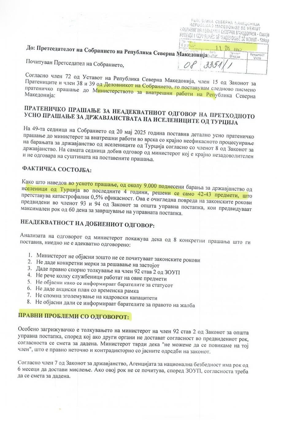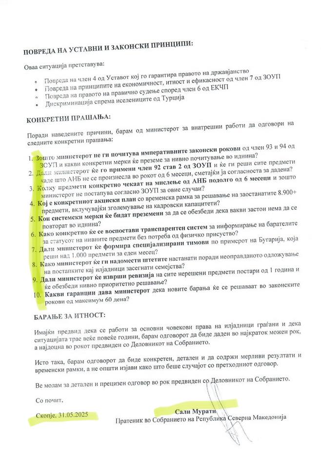 Kuzey Makedonya Cumhuriyeti Meclisi milletvekili olarak, Türkiye’deki Makedonya kökenli göçmenlerin vatandaşlık başvurularının işleme alınmasındaki vahim durumu kamuoyuyla derin bir endişeyle paylaşıyorum.