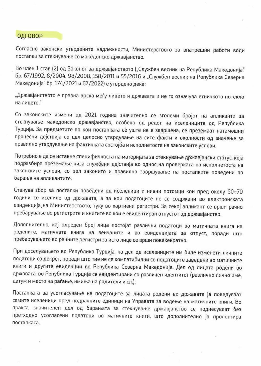 Makedonya Türkleri Hak ve Demokrasi Hareketi’nin Avrupa Cephesi’nden seçilen milletvekili Salih Murat, Türkiye’de yaşayan Makedonyalı vatandaşları yakından ilgilendiren Vatandaşlık Yasası ile ilgili değerlendirmelerde bulundu.